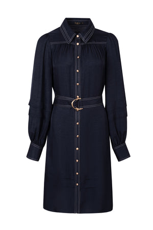 This G.D.S. Celine Dress showcases contrasting buttons, classic collar and playful sleeve details. The smooth, fluid fabric flatters any silhouette, making it a versatile addition to any wardrobe.