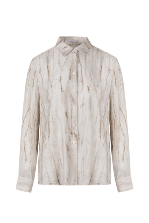 The color palette consists of a light beige or off-white base with subtle, irregular vertical streaks in a muted brown or taupe tone, resembling a marbled or wood-grain effect. The cuffs are simple, with no visible embellishments or extra detailing, emphasizing the minimalist design.